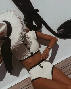 Classic swim trunks tailored for a refined, clean look. 5″ inseams with elastic panels on the hips and drawstring on the front. Lightweight and lined with mesh. Back pocket has zip closure to safeguard your belongings while in the water.Â