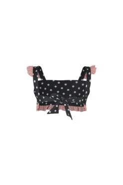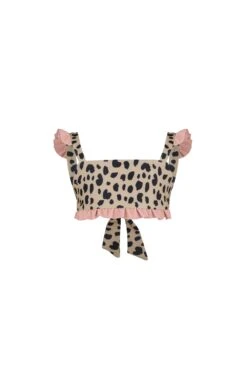 The ruffle bandeau top has a square neck with ruffle cap sleeves on the straps.