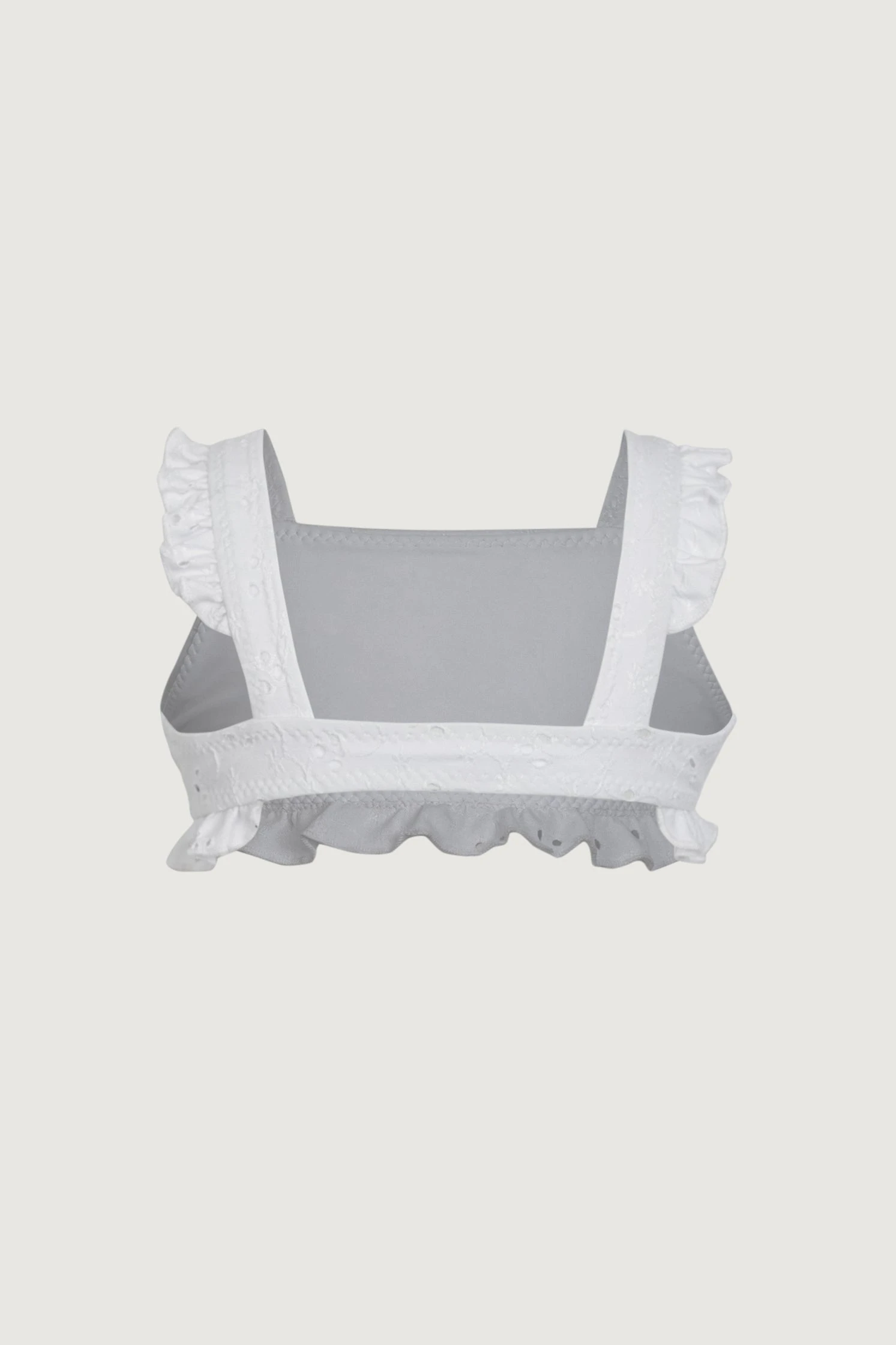 The ruffle bandeau top has a square neck with ruffle cap sleeves on the straps.