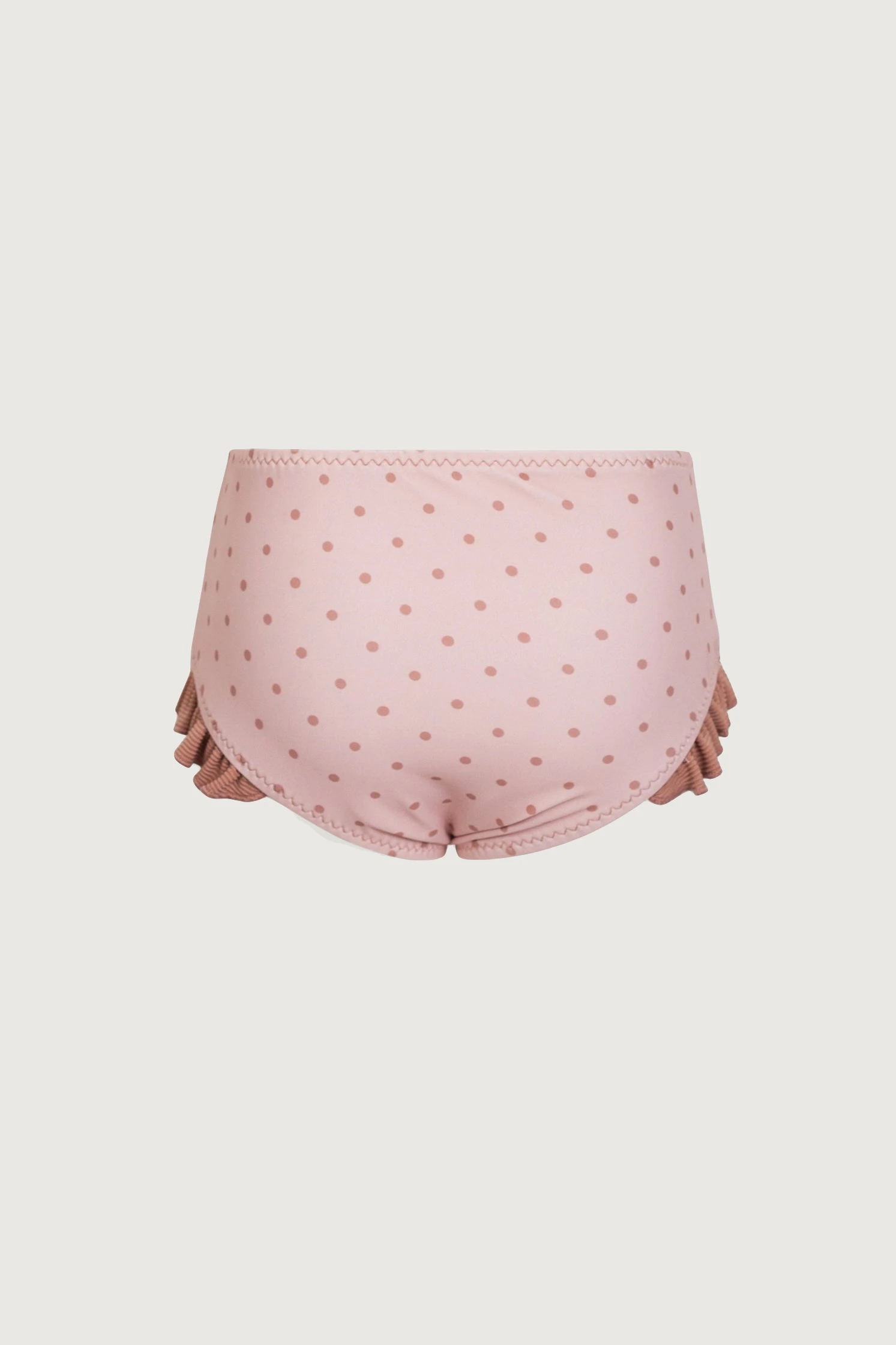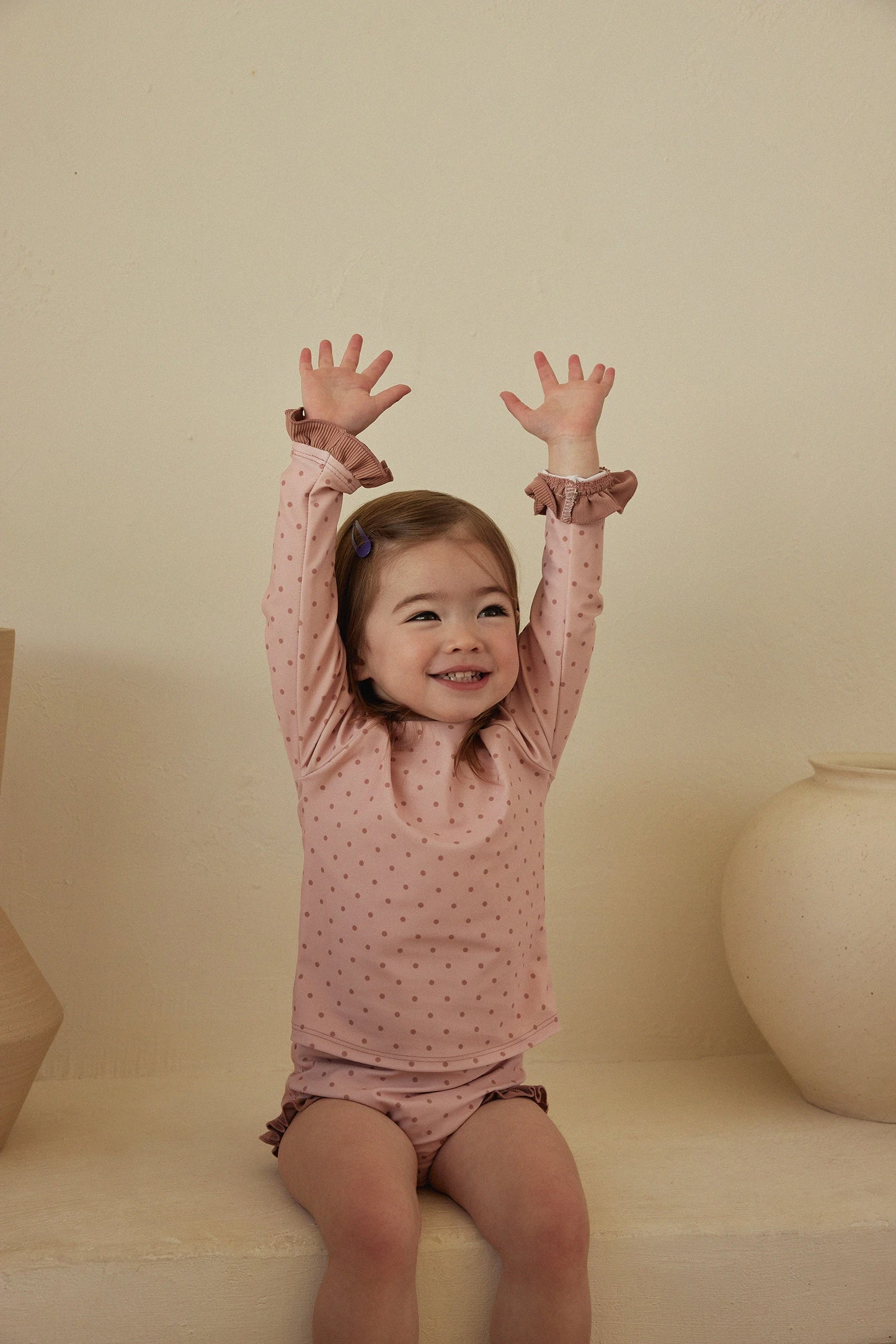 The swim bloomers has an elasticizes waist and fits over a swim diaper. Mix and match with the rashguard of your choice.