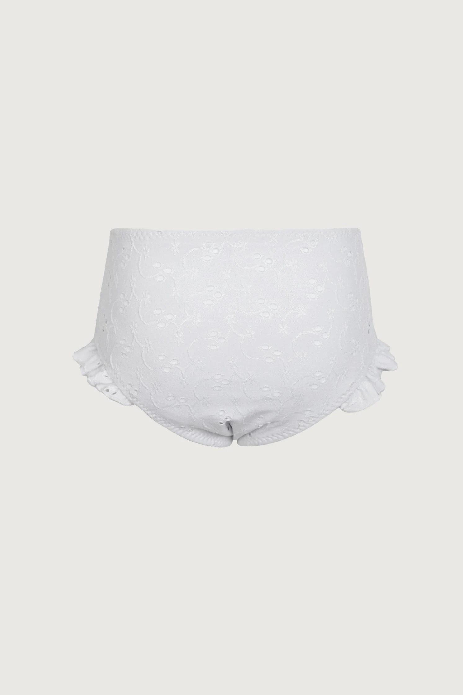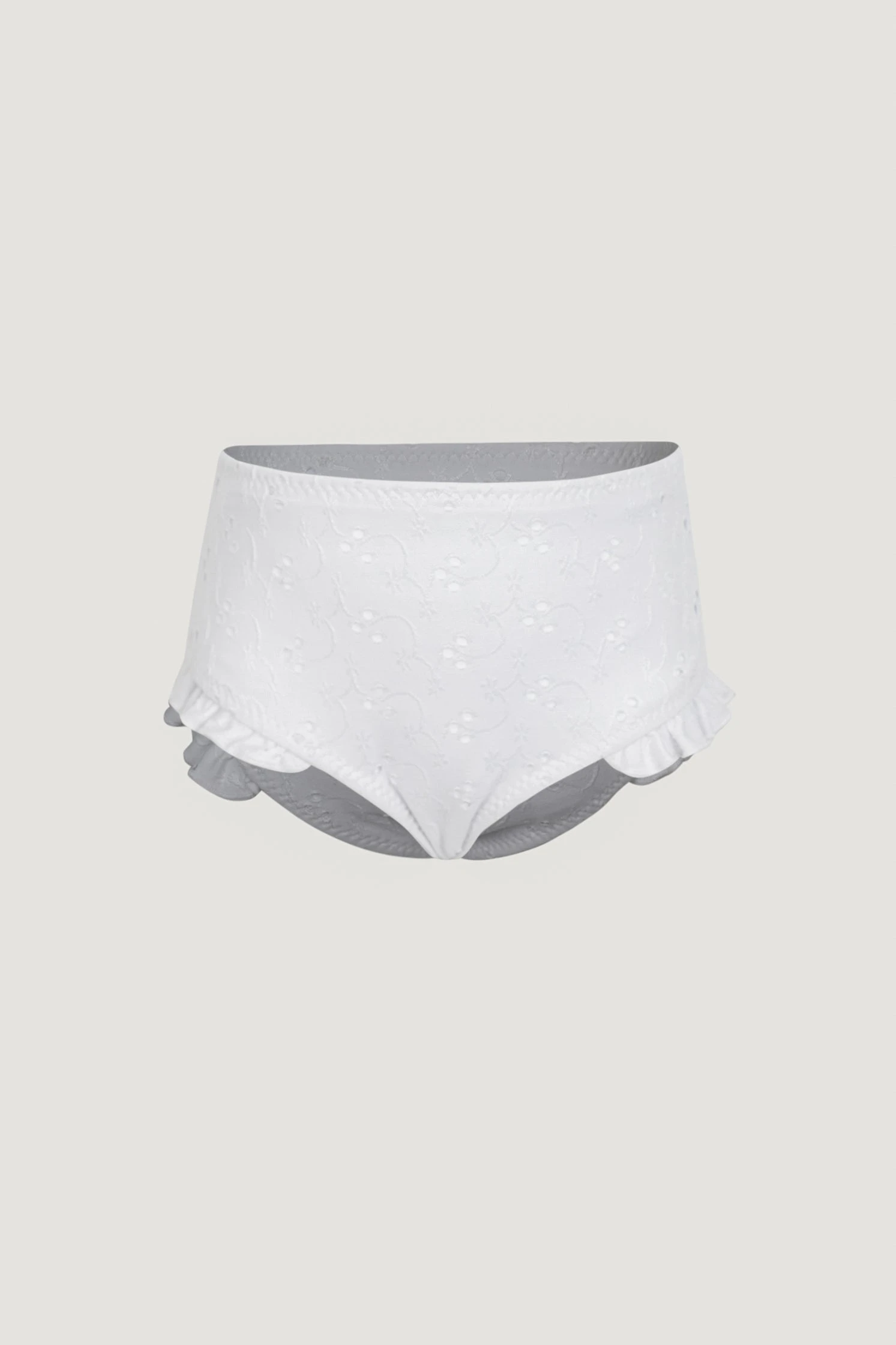 The swim bloomers has an elasticizes waist and fits over a swim diaper. Mix and match with the rashguard of your choice.